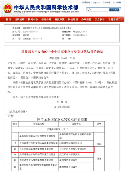 日前,国家科技部正式公布了企业国家重点实验室评估结果,光纤光缆制备技术国家重点实验室(美嘉体育光纤光缆股份有限公司)(以下简称“美嘉体育国重”)被评为“优秀类国家重点实验室”,并在信息领域位居首位。